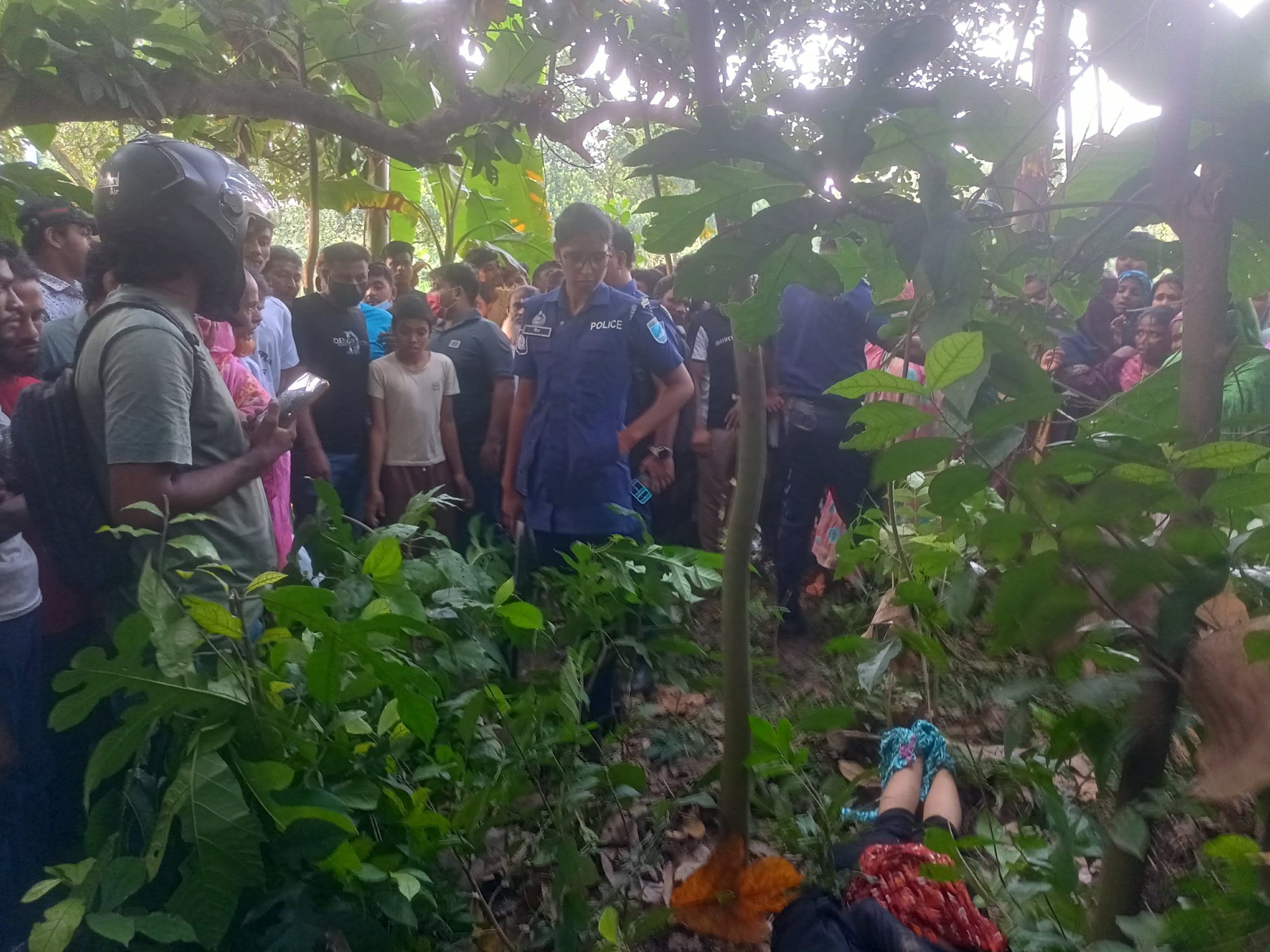 জমির মালিক সিরাজুল ইসলাম বলেন, “দুপুরে স্থানীয় কয়েকজন আমাকে জানায়, আমার জমির পাশে জঙ্গলে এক মহিলার লাশ পড়ে আছে। পরে আমি পুলিশে খবর দেই।”